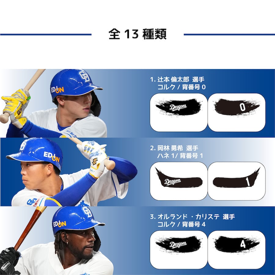中日ドラゴンズ アイブラック 6枚入 3ペア 承認 グッズ 転写式 背番号 黒 シール プロ 野球 cde2
