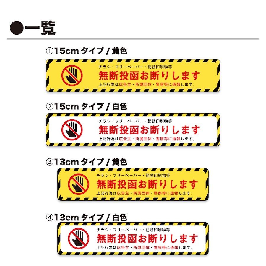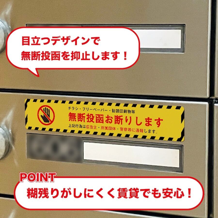 郵便受けなどに貼ることで、チラシや勧誘印刷物の投函を抑止するステッカーです。