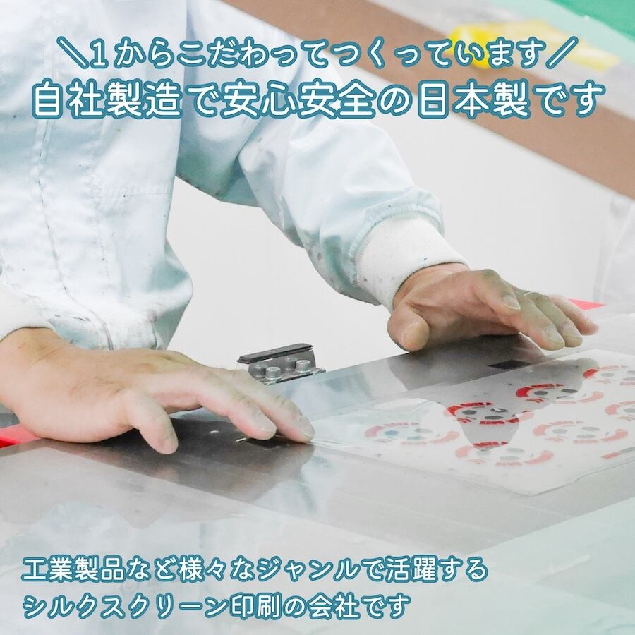 自社スクリーン印刷にて作成している商品ですので、屋外での利用もOKで、耐候・耐水性もバッチリ、日焼けによる色あせ・傷や汚れにも強く丈夫で長持ちします。
