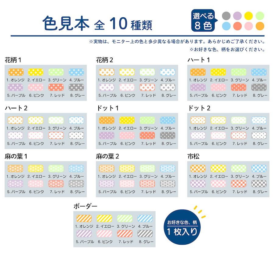<サイズ> ●本体サイズ 幅 10.1cm 高さ 8.9cm ●絵柄サイズ 幅 1.9cm 高さ 0.9cm <商品説明> ●めじるシール ブタ全8色 1.オレンジ 2.イエロー 3.グリーン 4.ブルー 5.パープル 6.ピンク 7.レッド 8.グレー ・お子様の靴下や衣服、介護施設への入居・入院の際の名入れ・仕分けに便利です。 ・マスクの仕分けにも使用いただけます。 ・家族の仕分け問題も一発解消。 ・目印に最適です。 ・お子様が一人でズボンが履けるように、前後の目印としてもいかがでしょうか。 アイロンを使わず、こすって接着させる新しいタイプのシールです。【ノンアイロン】 伸縮性があるので、伸びるタイプの素材にも貼れます。 洋服はもちろん、バッグなどの布製品のほか、レインウェアなどアイロンを使用できない素材にもお使いいただけます。 高熱を発するアイロンを使わないことから、小さなお子様がいるご家庭でも安心してお使いいただけます。 もちろん洗濯しても大丈夫です。 <注意事項> ※文字を書く際は油性ペンでお書きください。 ※ボールペンなどの先端が鋭利なペンの使用はご遠慮ください。シール部分が破損する恐れがあります。 ※乾燥機は使用しないでください。(はがれの原因になります) ※漂白剤は使用しないでください。(色落ちの原因になります) ※ドライクリーニングは使用しないでください。 ※強い摩擦により、はがれが生じることがございますので、摩擦が強い箇所はお控えください。 ※お使いの環境(機種、OS、ブラウザ、ディスプレイ設定)等により、多少の色味の違いが出る場合がございますので予めご了承下さい。